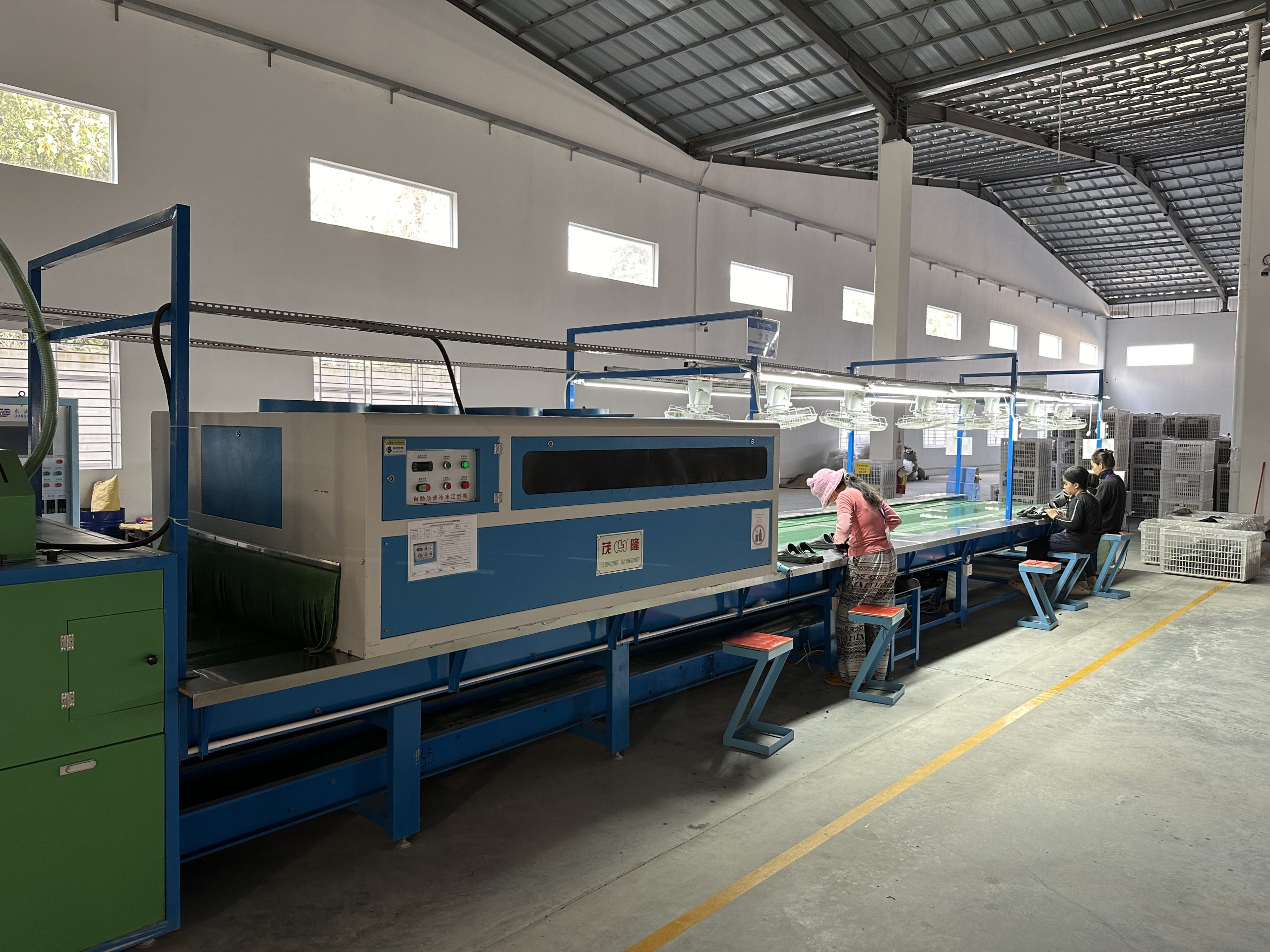 There are 6 sets of the most advanced semi-automatic EVA injection machines from China, 5 sets PVC injection machine etc , also manufacturing production line, standardized testing equipment, international standards of footwear physical testing laboratory.